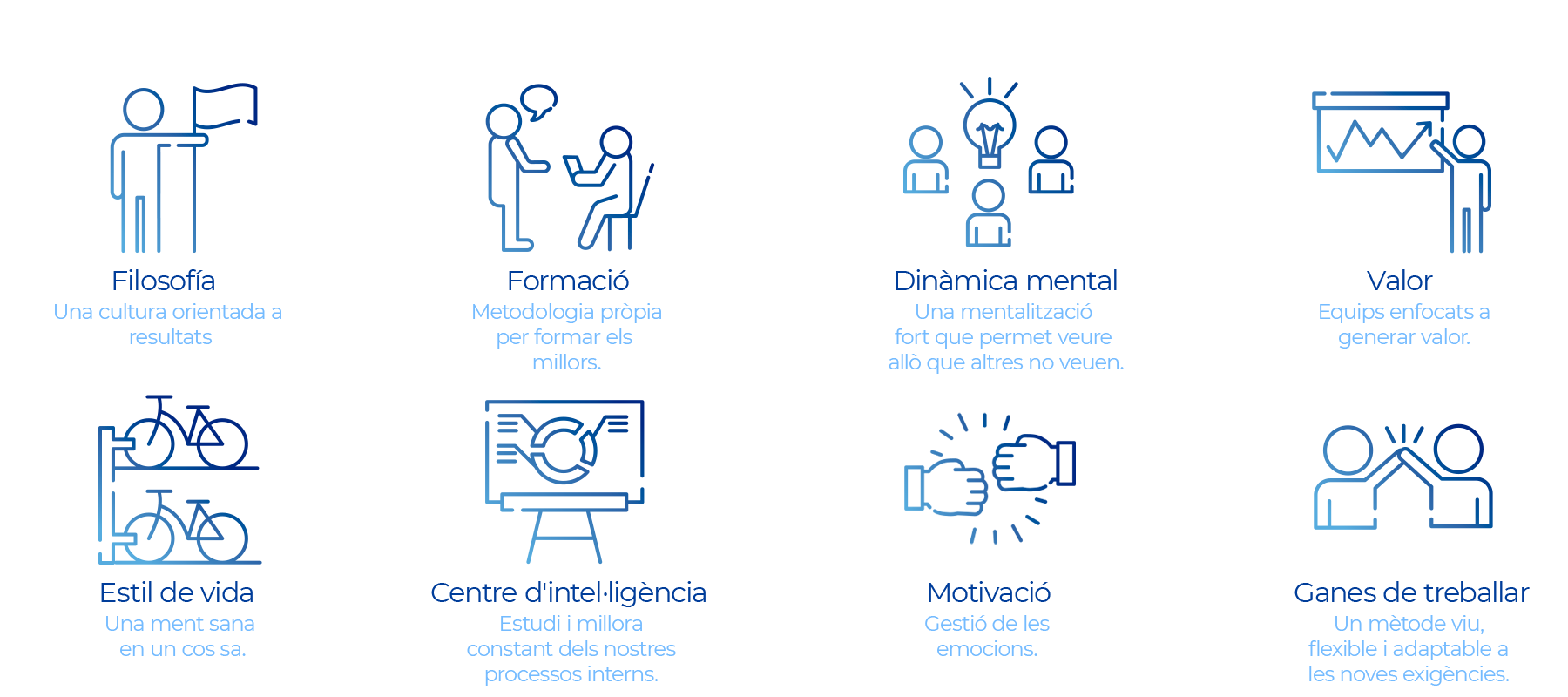 Estem pendents dels avanços de cada persona i sabem reconèixer-los i valorar-los. Creiem plenament en la promoció interna com a mètode eficaç d'estabilitat i prosperitat.